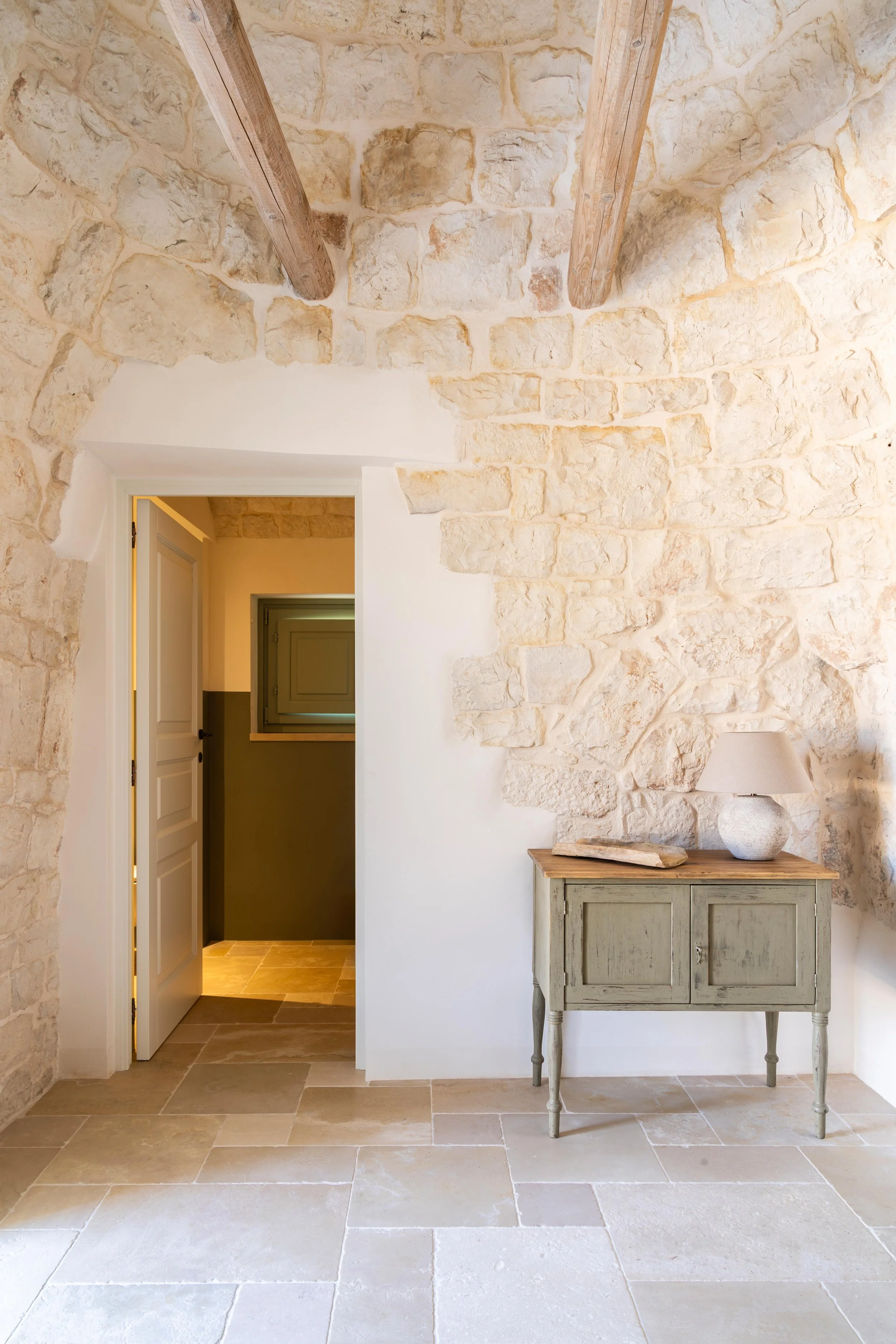 L'appartamento "Grecale" è composto da tre trulli e due lamie con caratteristica volta a botte.